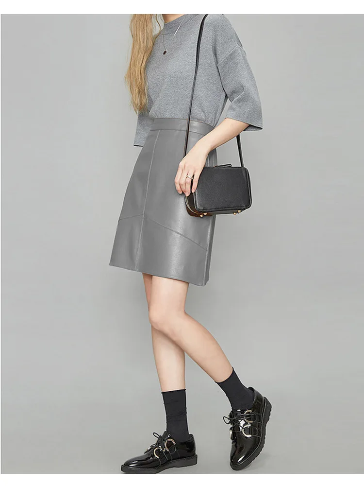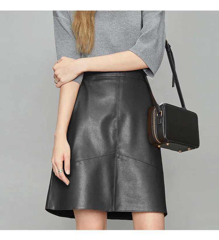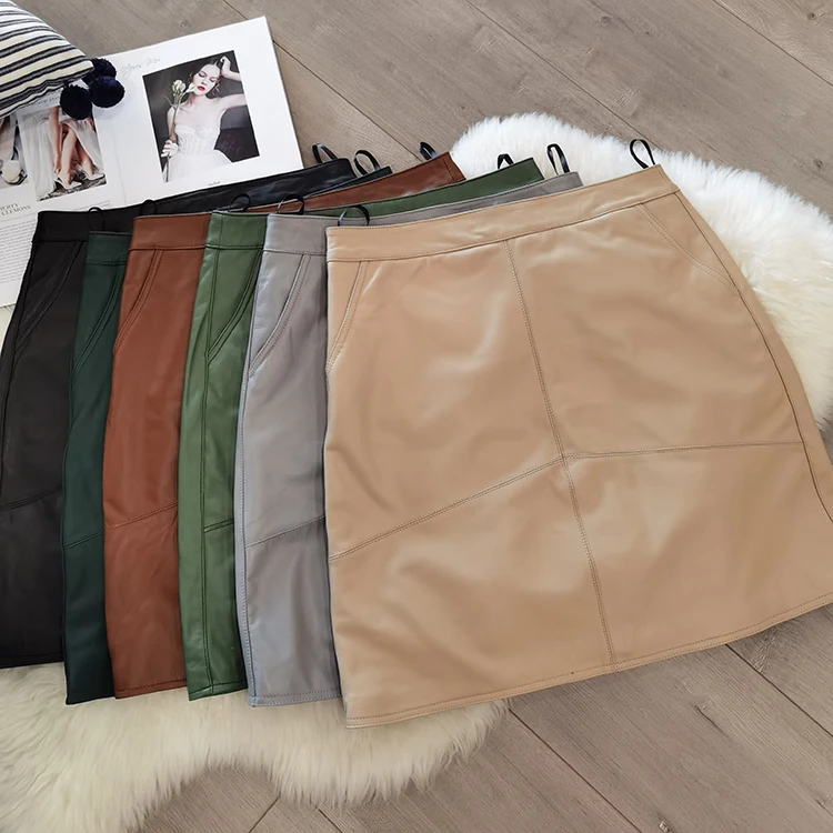 woman skirts elegant plus size 2020 new fashion korean style genuine real leather skirts high waist mini skirt womens
