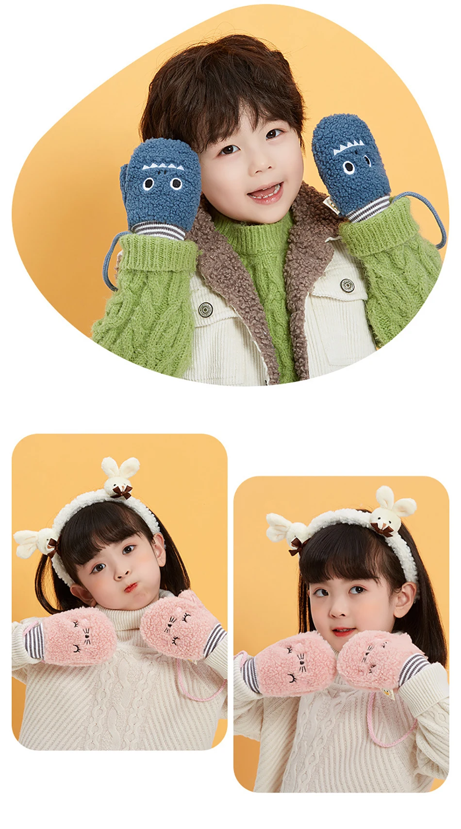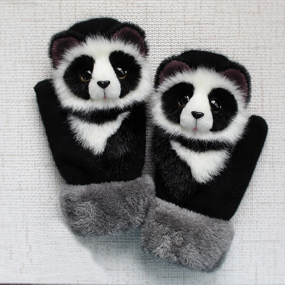 Woman Winter Girls Warm Soft Rabbit Fur Knit Mittens kids Flip Half finger Driving Gloves Plush Thick Cute Cat Gloves 17CM