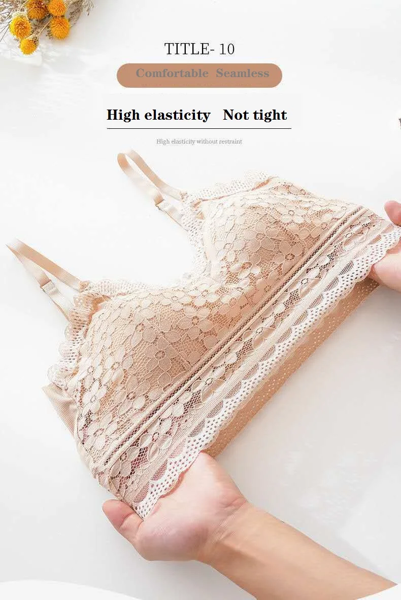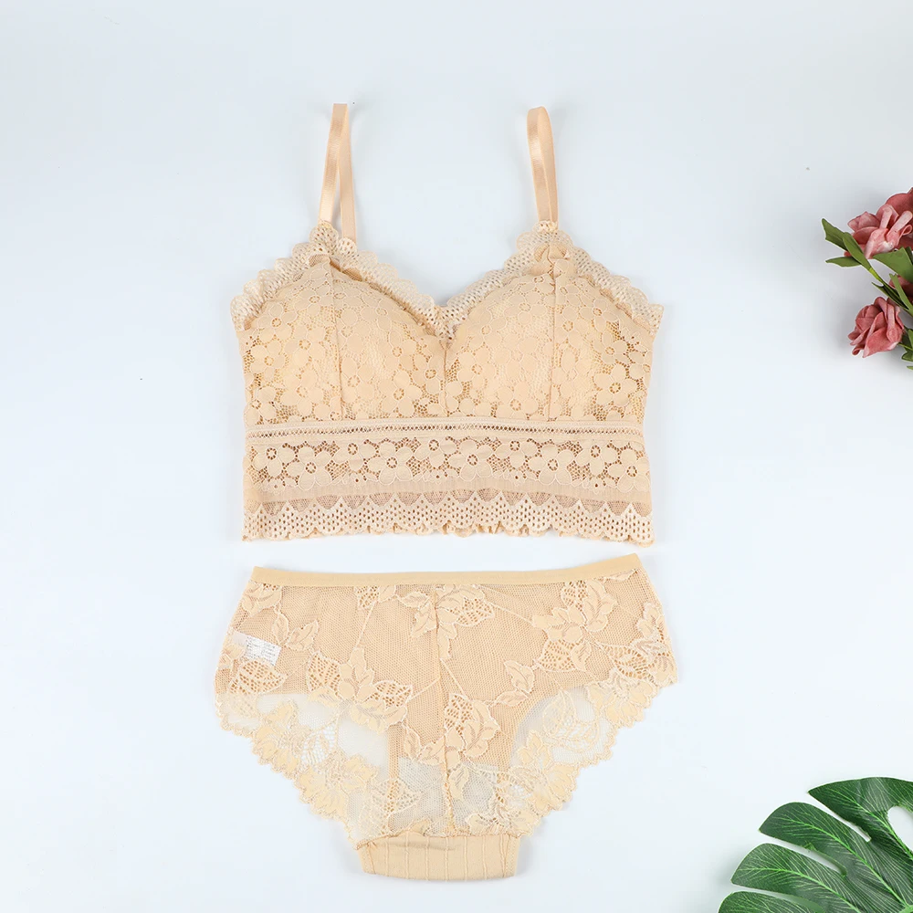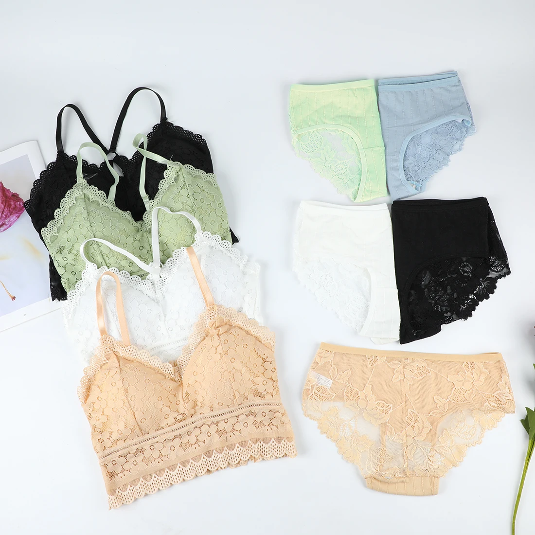 Women Lace Bra Sets Seamless Top Underwear Backless Vest Sexy Panties Lingerie Padded Bralette Ultrathin Briefs Female Intimates