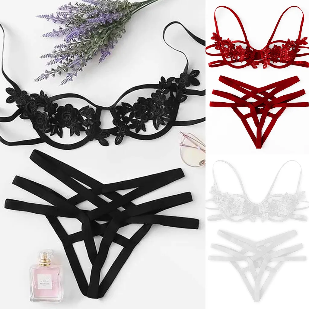 Women Lingerie Corset Lace Underwire Racy Muslin Sleepwear Underwear Tops+Briefs