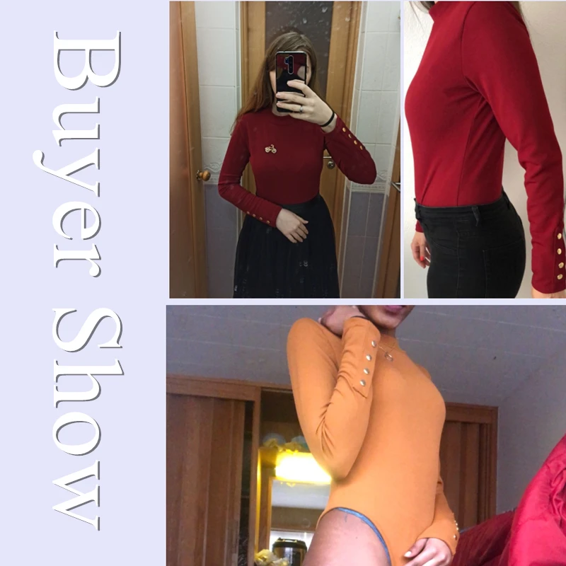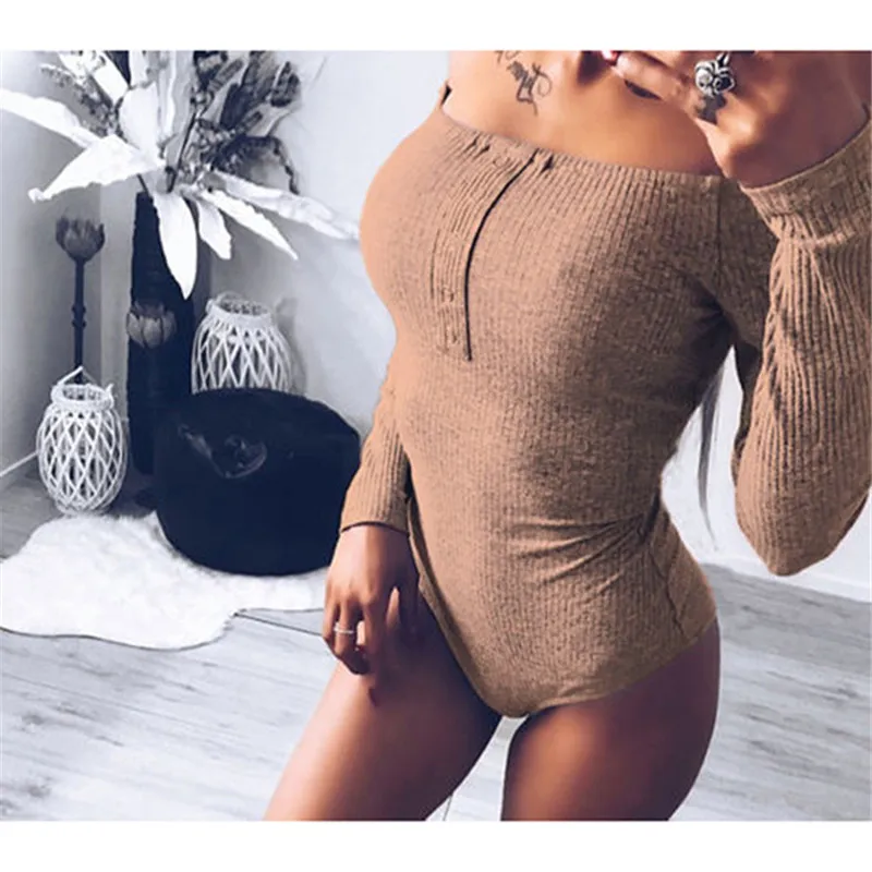 Women Long Sleeve Bodysuit Fashion Stretch Women’s Bodysuit With Button Solid Slim Casual Ladies Rompers Autumn Clothing