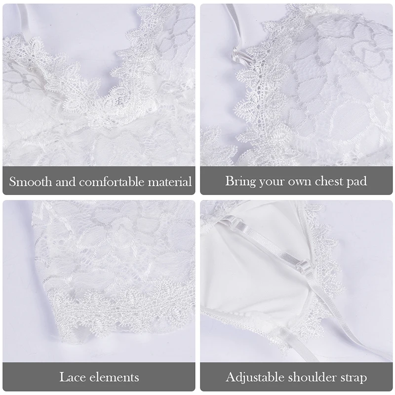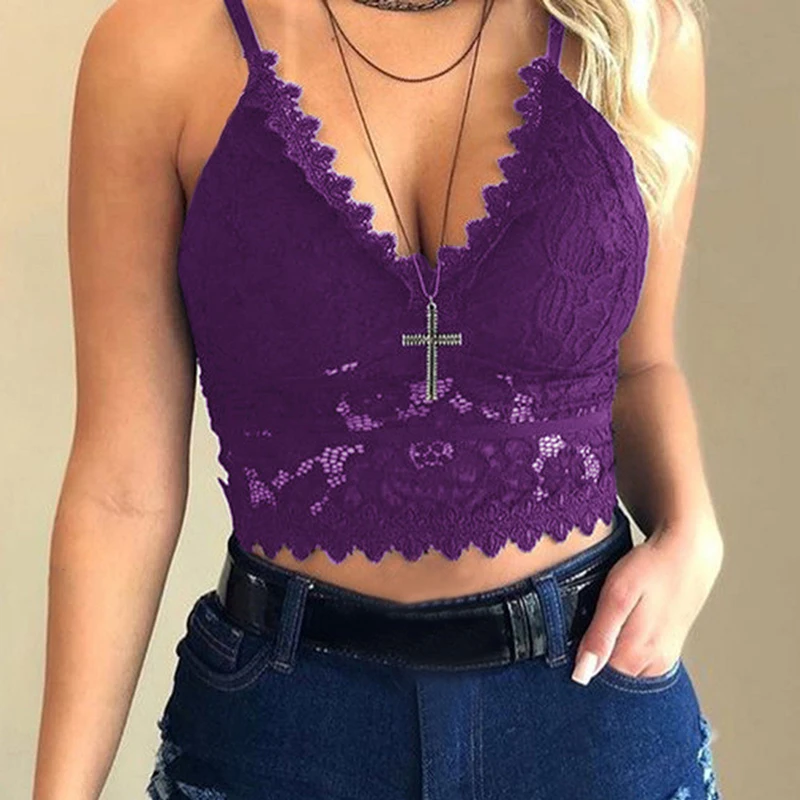 Women Plus Size Vest Crop Tops Bralette Wireless Lingerie Sexy V-Neck Underwear Tank Top Women Deep V Back Underwear Camisole