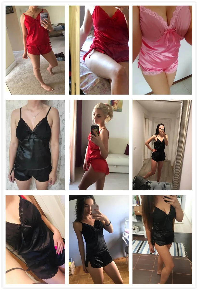 Women Sexy Lingerie set Lace Crop Top shorts pajamas set Sleepwear Satin pijama Nightwear pyjama femme Night suit