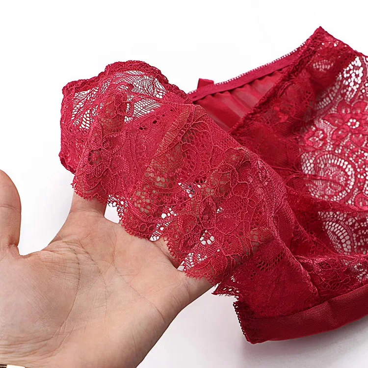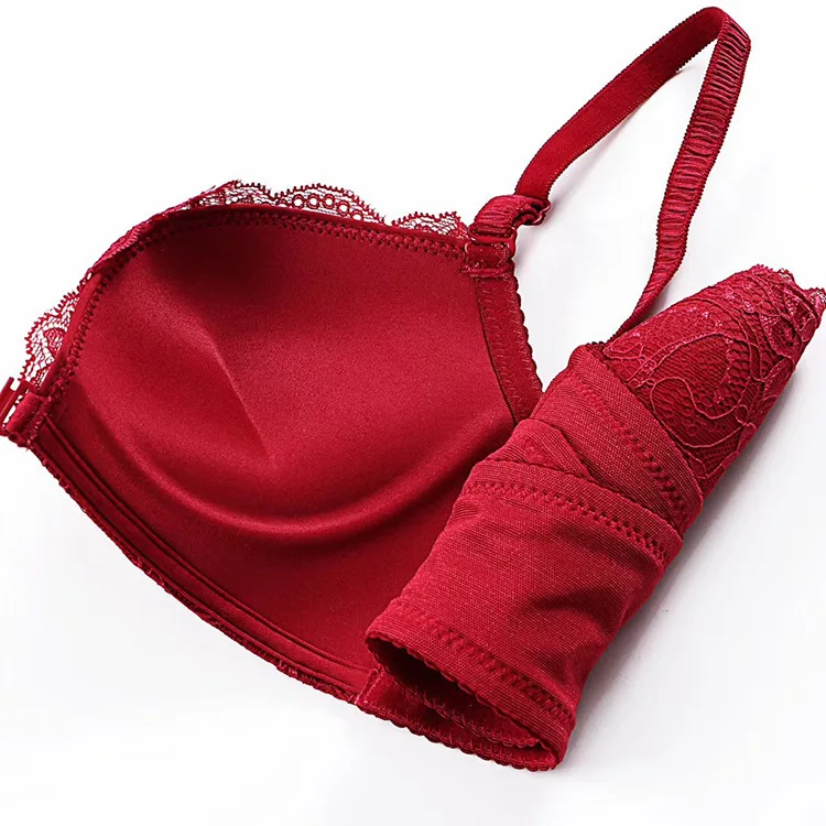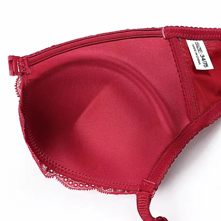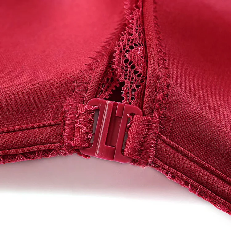 Women Sexy Red Underwear Set Push Up Bra Set Lingerie Panties Lace Underpanty Ladies Cotton Gather Suit New Front Closure