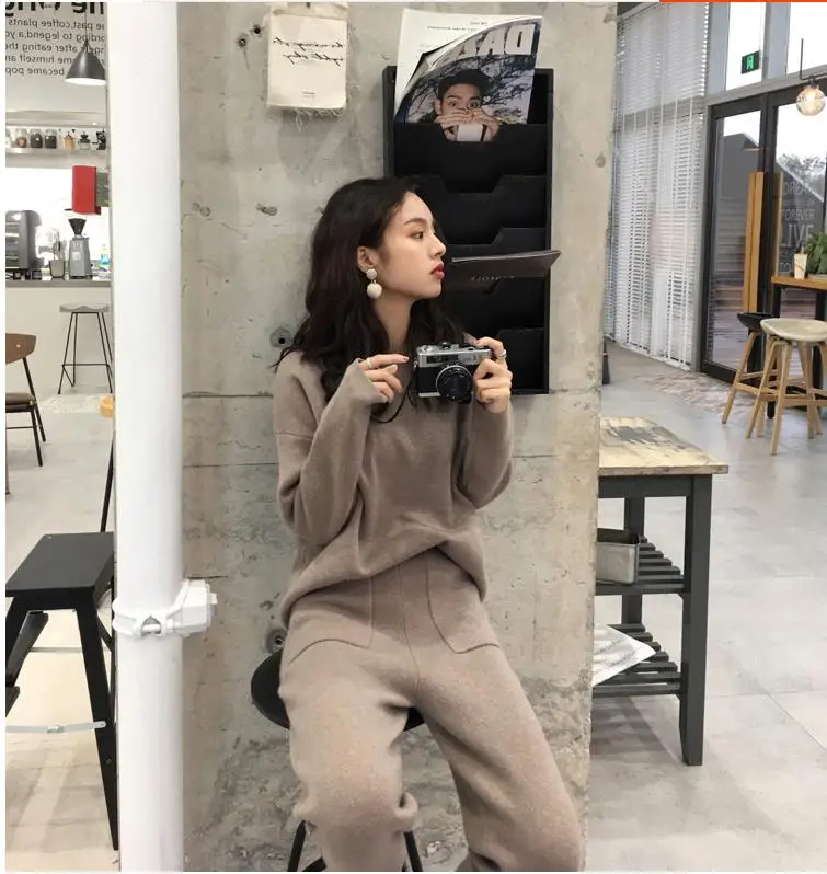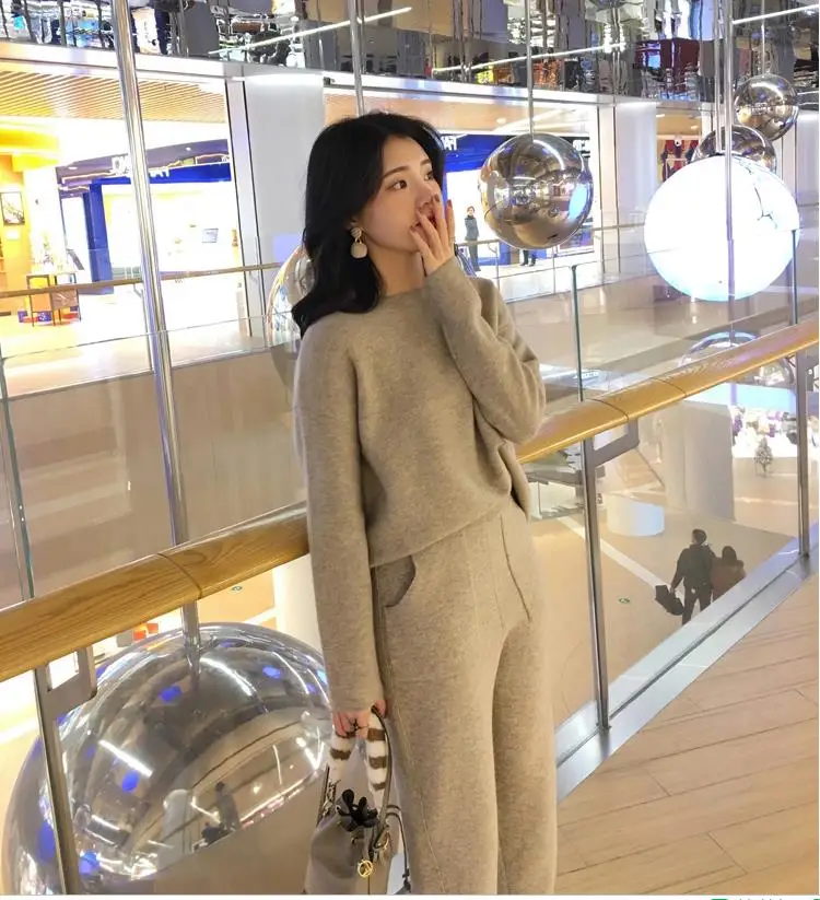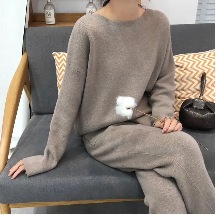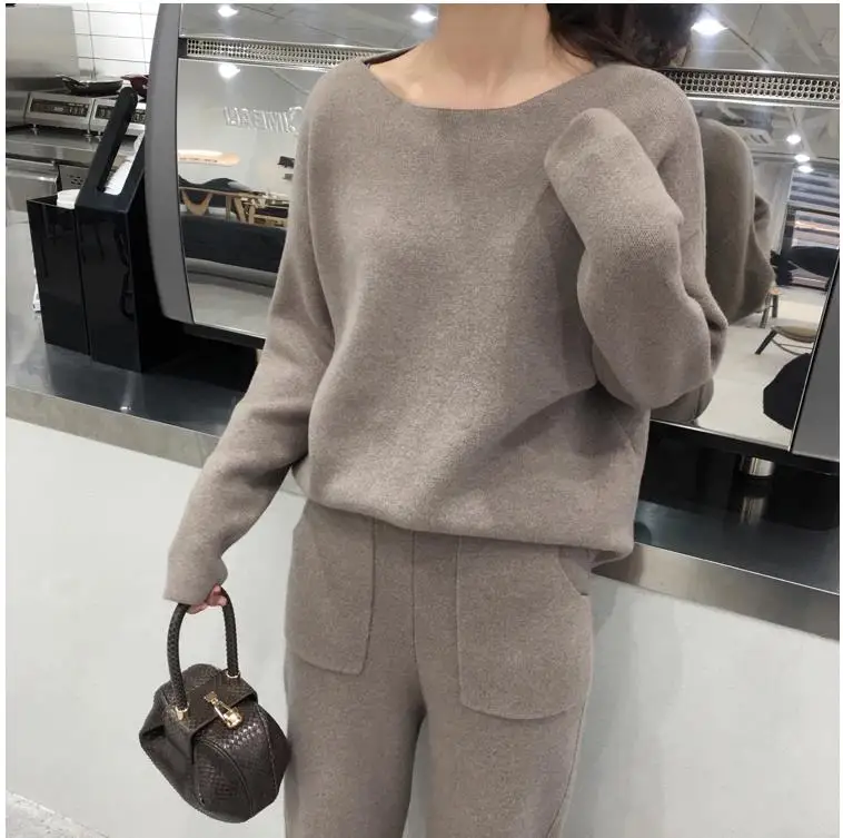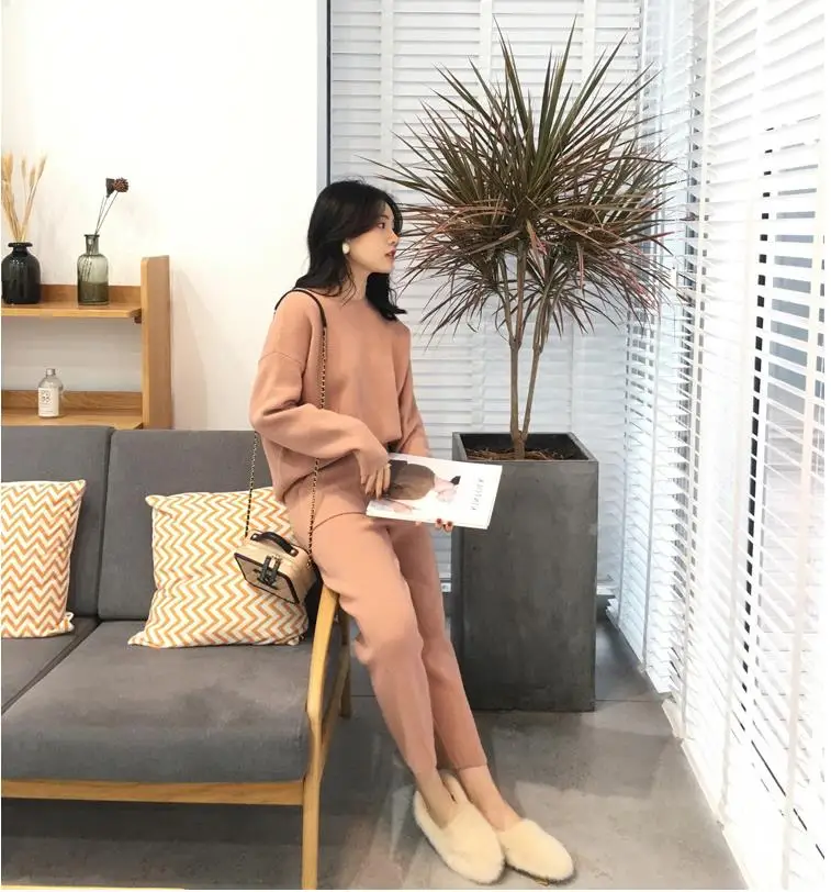 Women Sweater Two Piece Knitted Pant Sets Slim Tracksuit 2020 Spring Autumn Fashion Sweatshirts Sporting Suit Female