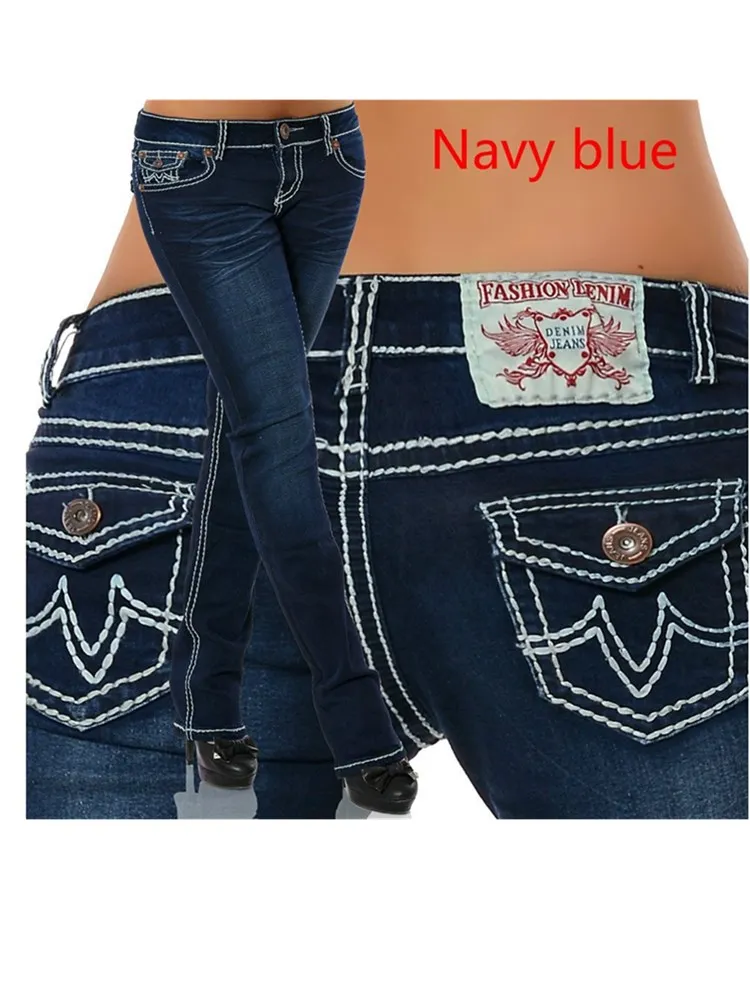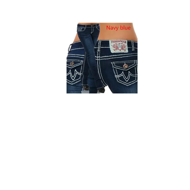 Women The high street Denim Lady’s Skinny embroidered Slim Trouser Sexy Pencil Pants Low waist Elastic waistline Women clothi
