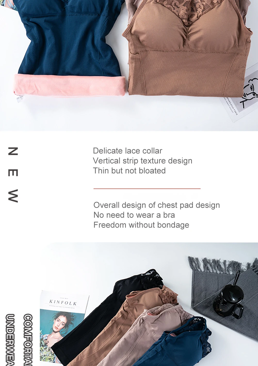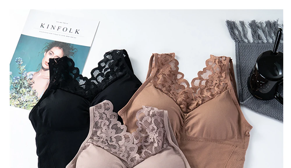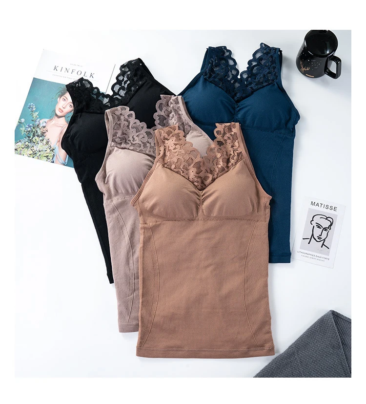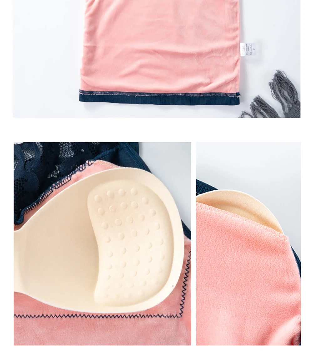 Women Warm Slim Tank Top Plus Velvet Thermal Underwear Sexy Lace V Neck Crop Top Thermo Lingerie With Gathered Padded Bra