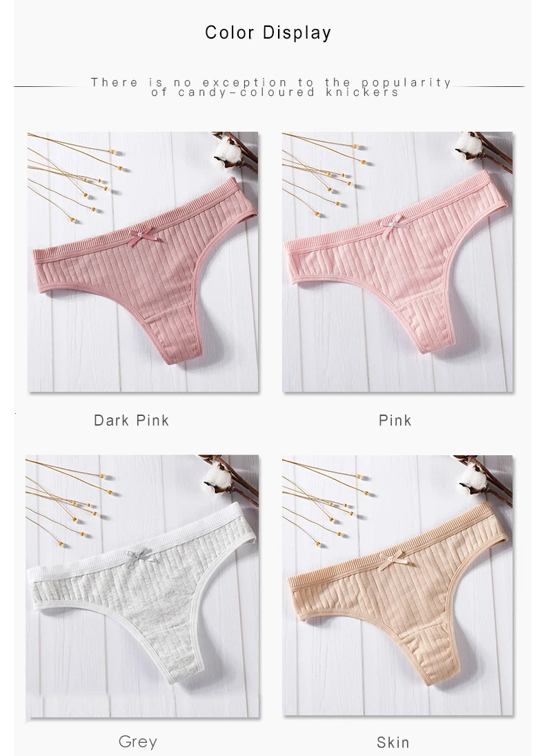 Women’s Cotton G-String Thong Sexy Panties for Women String Briefs Underwear Intimate Lingerie Ladies T-back Low-Rise 3 Pcs/set