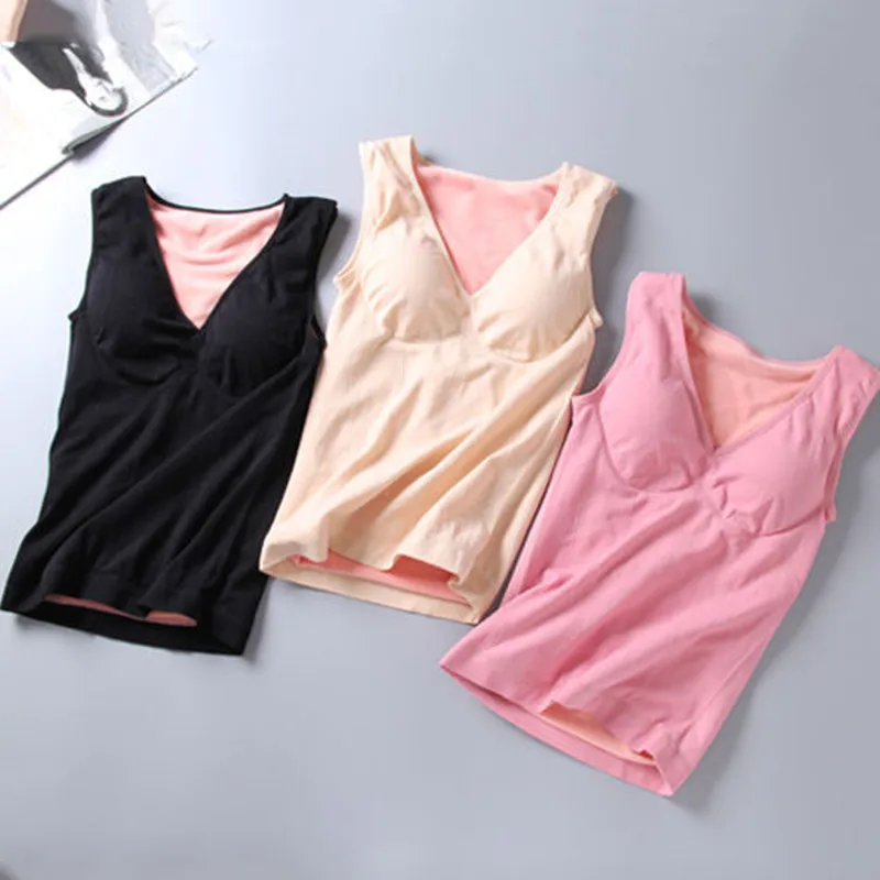 Women’s Flannel Bra Vest thermal Plush underwear V-Neck thick warm Elastic Shirt 2020 Winter Lingerie Clothing