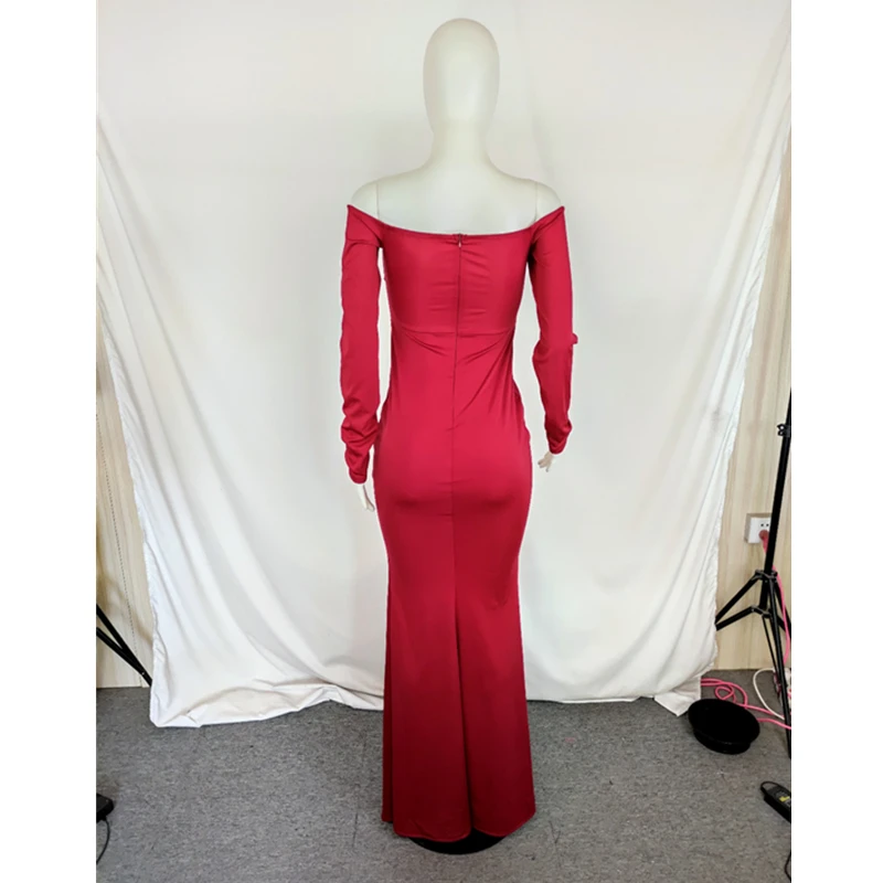 Product Name Solid Color Off Shoulder Split Evening Dress