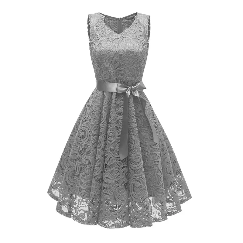 Product Name Women’s Full Dress V-Neck Lace Sleeveless A-Line Evening Dress L36136