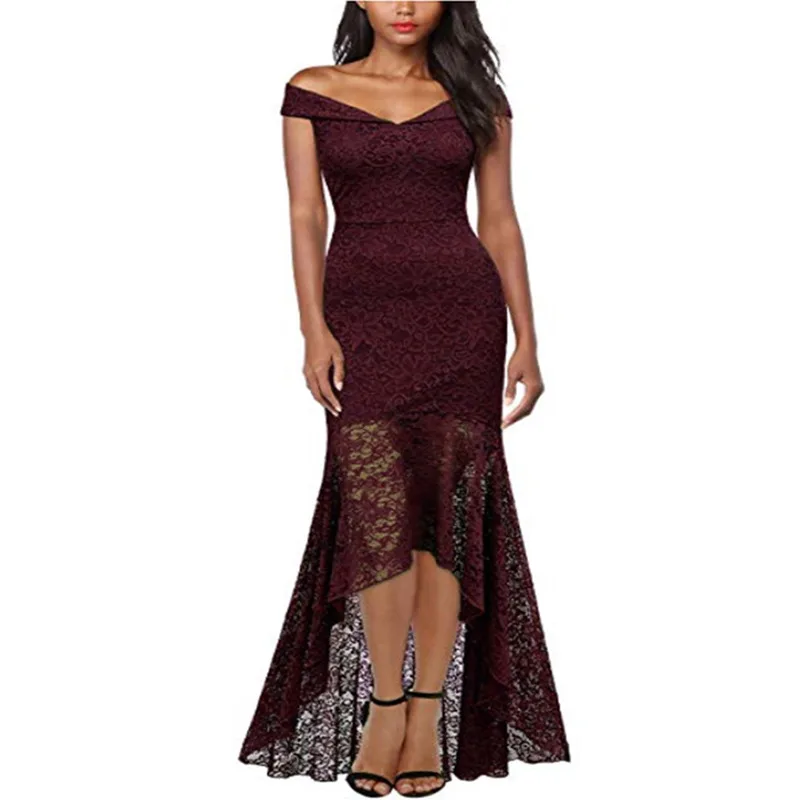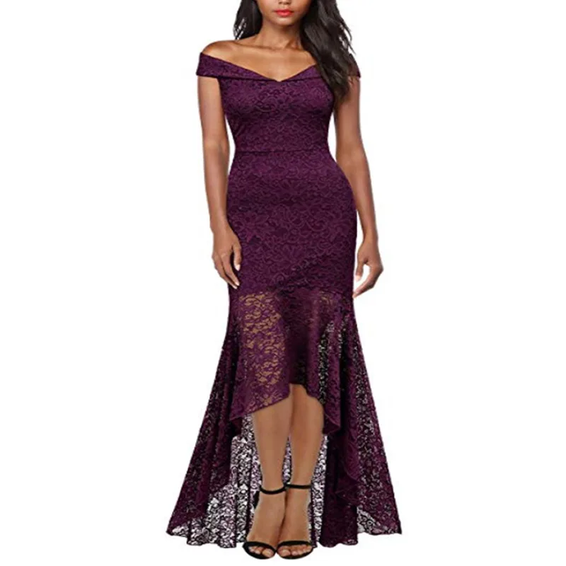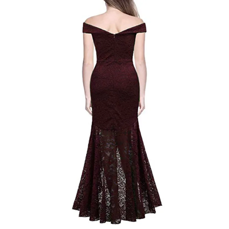Product Name Women’s Full Dress Vintage Off Shoulder Floral Lace Evening Dress L5133