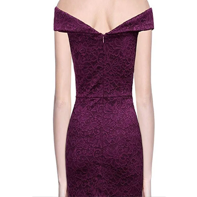 Women’s Full Dress Vintage Off Shoulder Floral Lace Evening Dress L5133