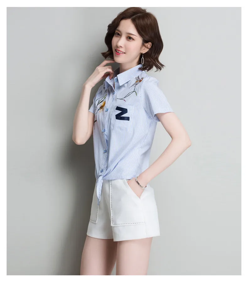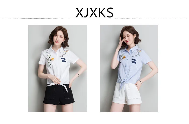 XJXKS Women Shirts Summer Short Sleeve Turn-down Collar Stripe Cotton Women Shirt Oversized Size Womens Tops And Blouses