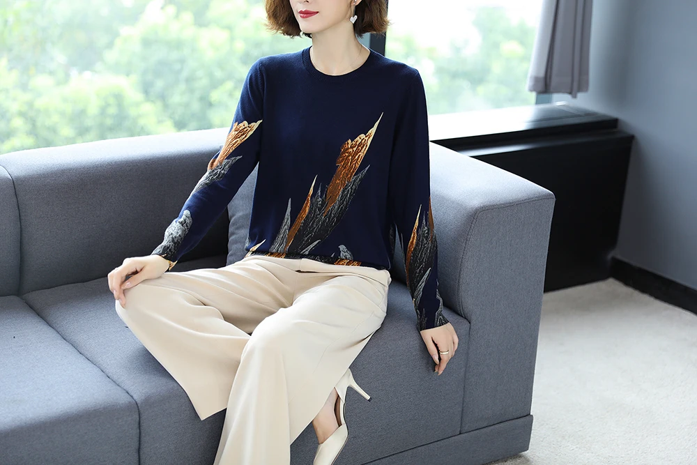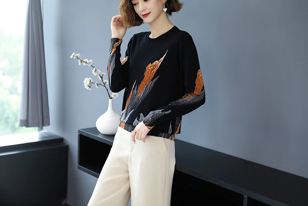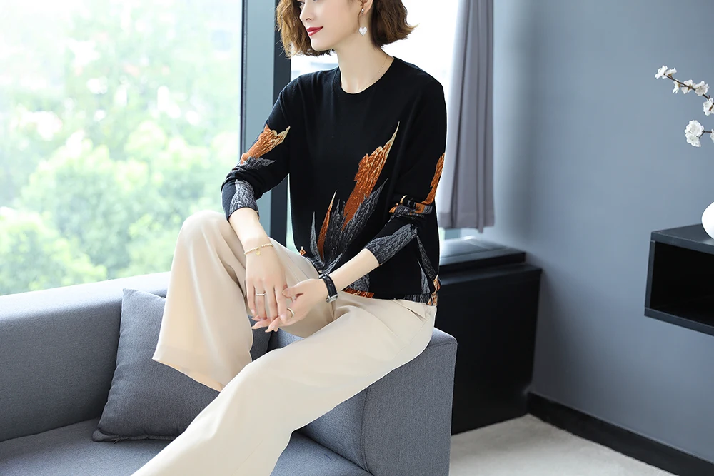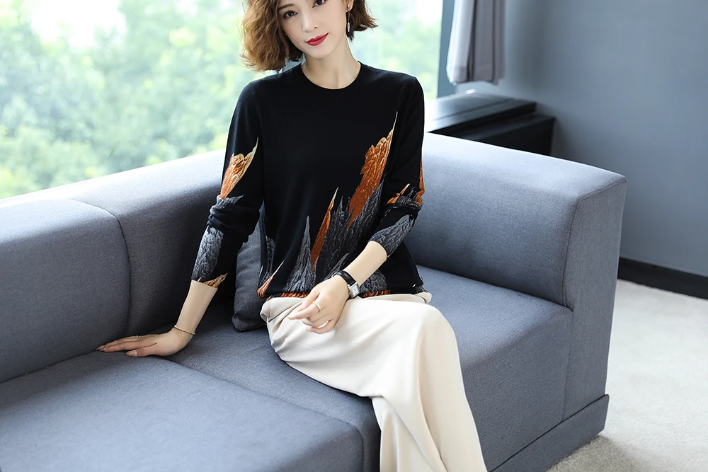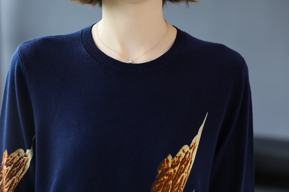 YISU 2020 Autumn Winter Casual Knitted Sweater Women Pullover Sweaters Loose Jumper O neck Long sleeve Printed sweater Women
