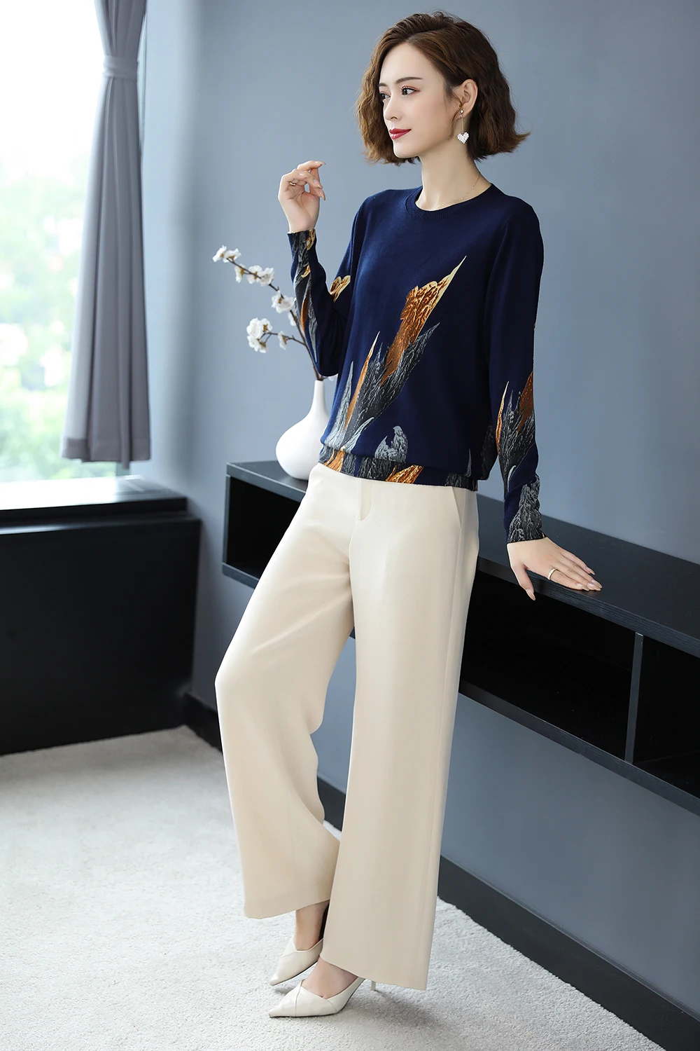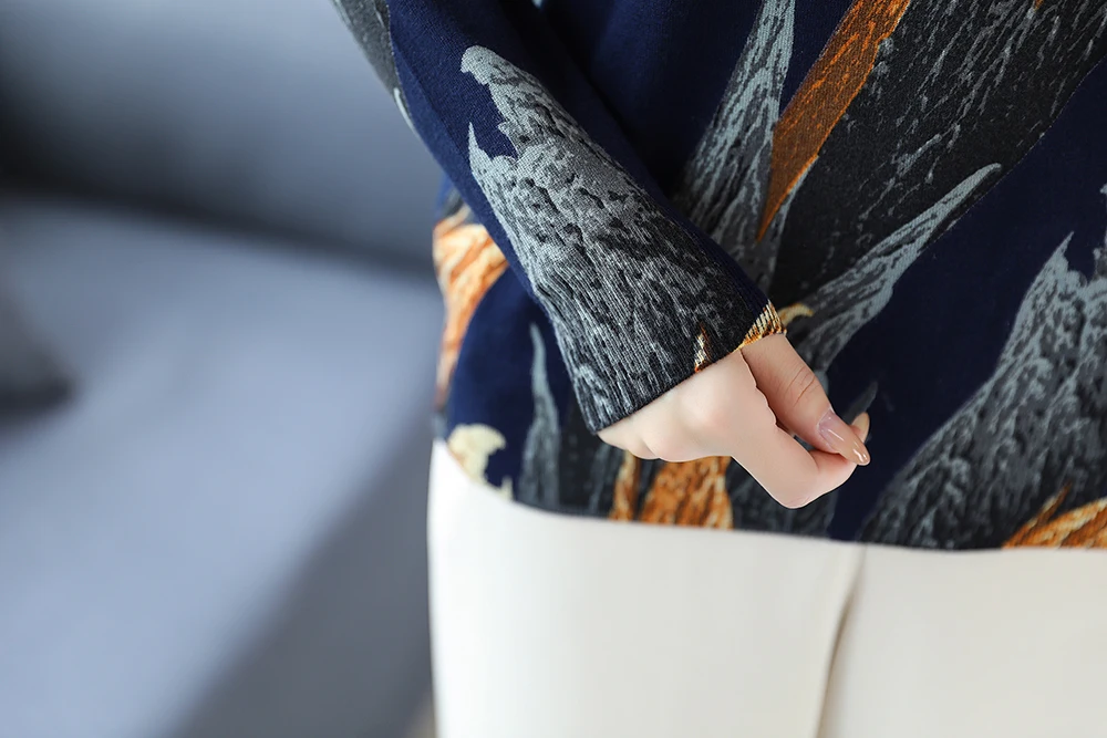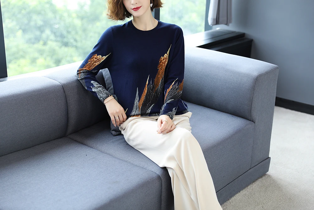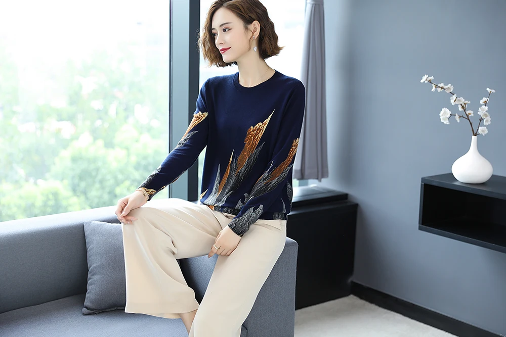 YISU 2020 Autumn Winter Casual Knitted Sweater Women Pullover Sweaters Loose Jumper O neck Long sleeve Printed sweater Women