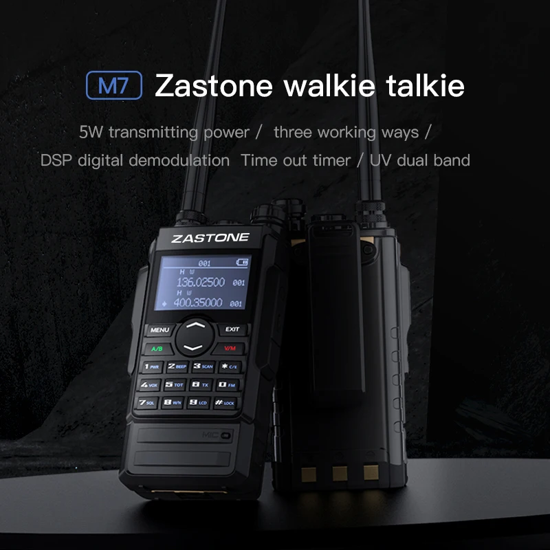 Zastone M7 dual band 5W walkie talkie 136-174 400-480mhz 250 channels 2600mah battery hf transceiver ham radio