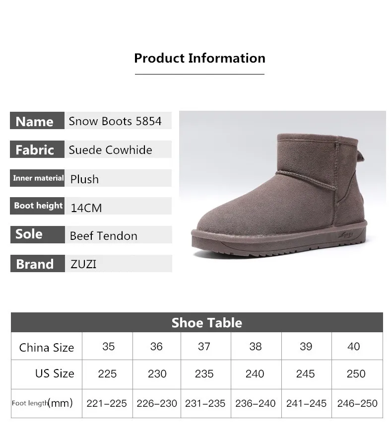 ZUZI Famous Brand Shoes Women And Men Winter Snow Boots Australia Style Genuine Leather Ankle Boots Women Waterproof Warm Short Shoes Size 35-44